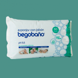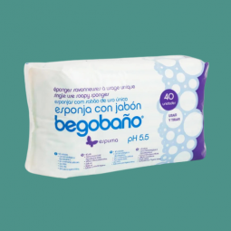 Esponja amb sabó d'un sol ús per a una correcta neteja i higiene de la pell. Les esponxes es recomanen per a ús diari eliminant la sucietat amb un efecte de massatge suau.