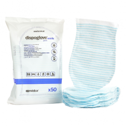 Caixa 2.000 UtsManyopla anatòmica de 25x17cm, fabricada íntegrament en fibra lleugera de polièster i impregnada en loció sabonosa de neutre pH5.5 per una cara.