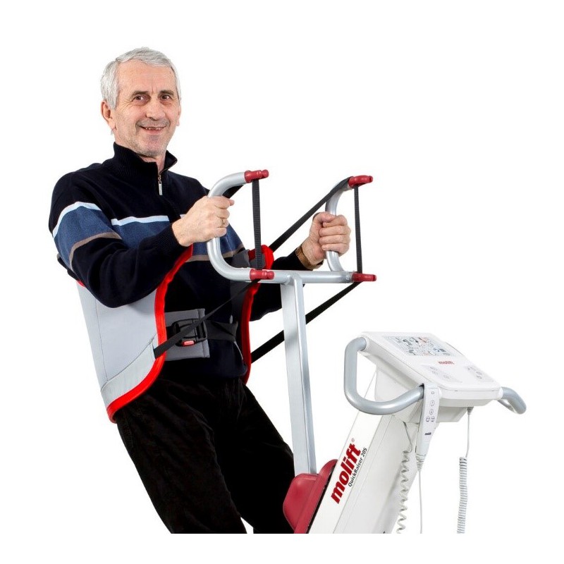 La cinta Molift RgoSling Active està dissenyada per distribuir el pes i la pressió uniformement i fer que el trasllat sigui el més còmode possible. És una cinta elevadora per a moviments actius en combinació amb la grua Quick Raiser 205.
