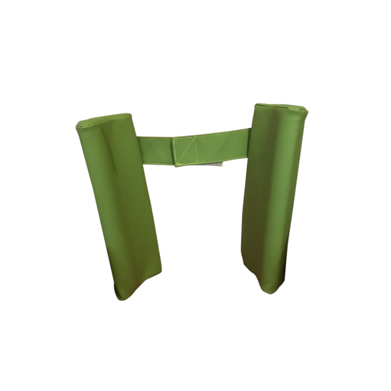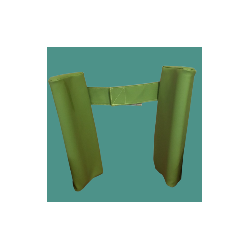 Suport lumbar de poliuretan, vinil. Adaptable a cadira amb suport alt amb fixació mitjançant velcro de fàcil maneig.