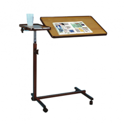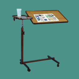 Mesita auxiliar de un plano basculante que permite una inclinación de hasta 90º en ambas direcciones. El tablero tiene un borde externo para evitar la caída de los objetos.