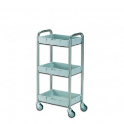 Carro de ropa de 3 bandejas de polipropileno y chasis de acero inoxidable.