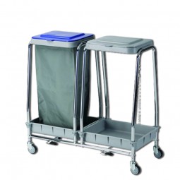 Carro de recogida y transporte de ropa con 1 bolsa plastificada y chasis cromado.