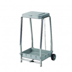 Carro de ropa con tapa y bandeja de polipropileno con pedal, fabricado en hierro cromado y con soporte para bolsa plastificada (también se puede colocar una bolsa de plástico de 85x105cm).
