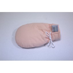 Manopla de protección (par) de tejido exterior en algodón 100%, no alérgico y transpirable. Costuras situadas fuera de las zonas de apoyo, realizadas con hilo de alta resistencia. Evita que el paciente se autolesione y/o manipule pañales, sondas, catéteres, etc Guata interior de fibras de...