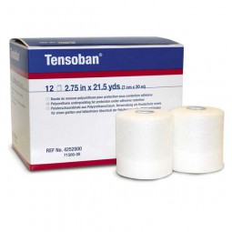Benda de poliuretano protectora de la piel y el vello, para aplicación anterior a un vendaje adhesivo. Puede permanecer en contacto con la piel sin problema alguno. Medidas 20m x 7cm. Caja de 12 unidades.