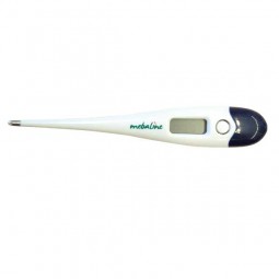 Termómetro digital Mebaline con señal acústica de final de medición. Muestra el valor de la última medición.