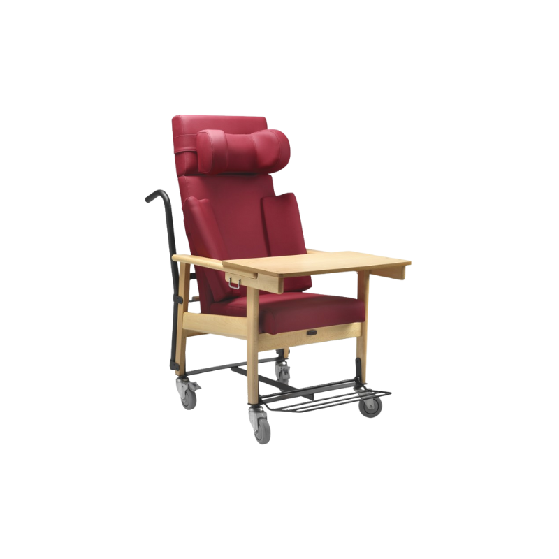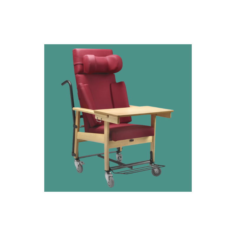 Sillón con respaldo alto reclinable partido con kit de traslado, de madera maciza de haya, poliuretano y vinilo.